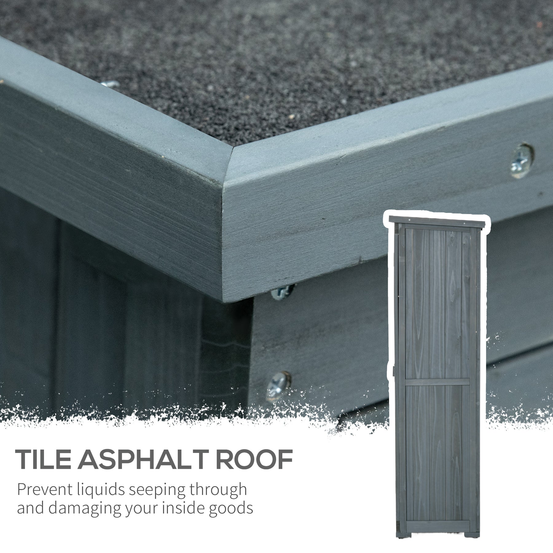 - • Tilted asphalt to protect inside against light or medium rain seeping through