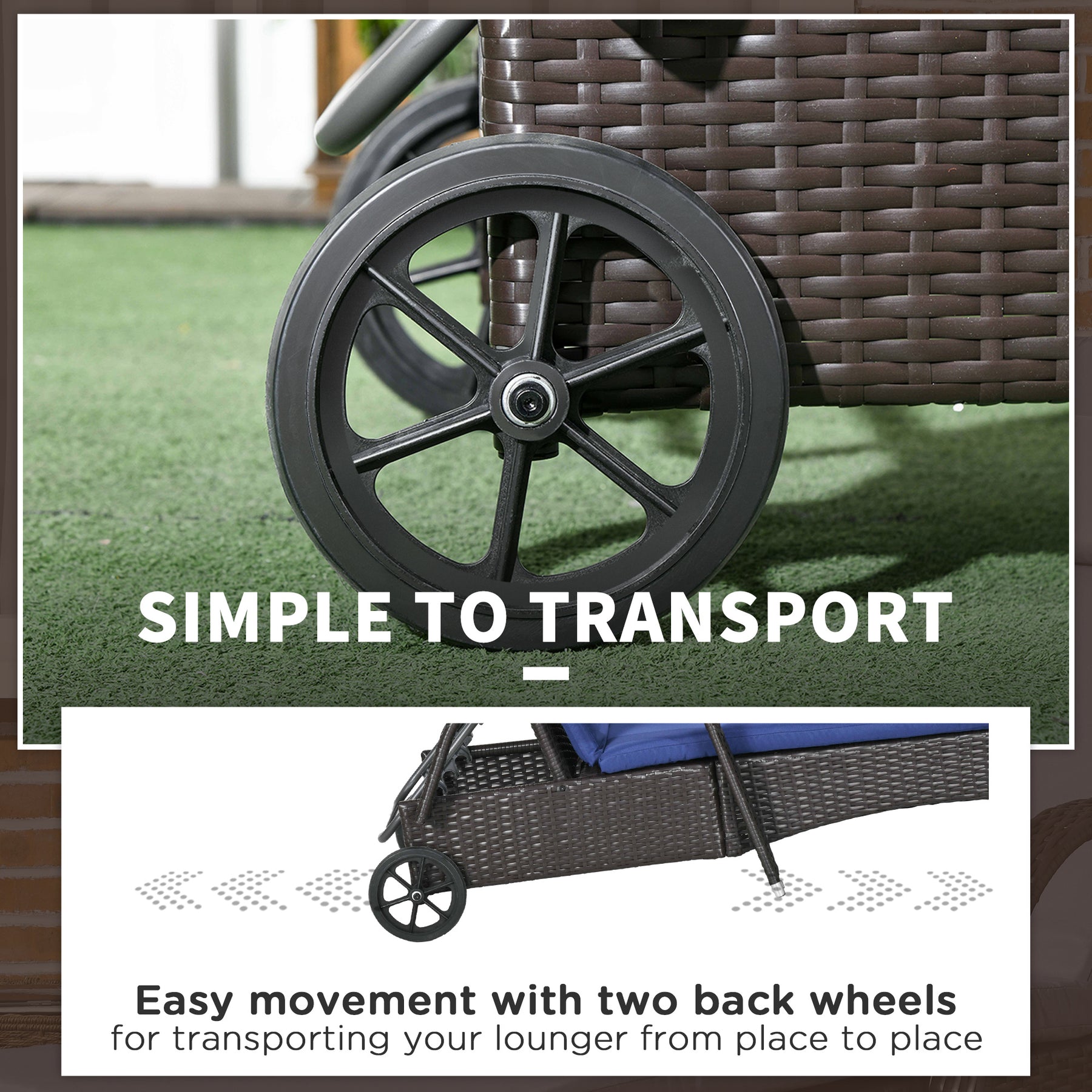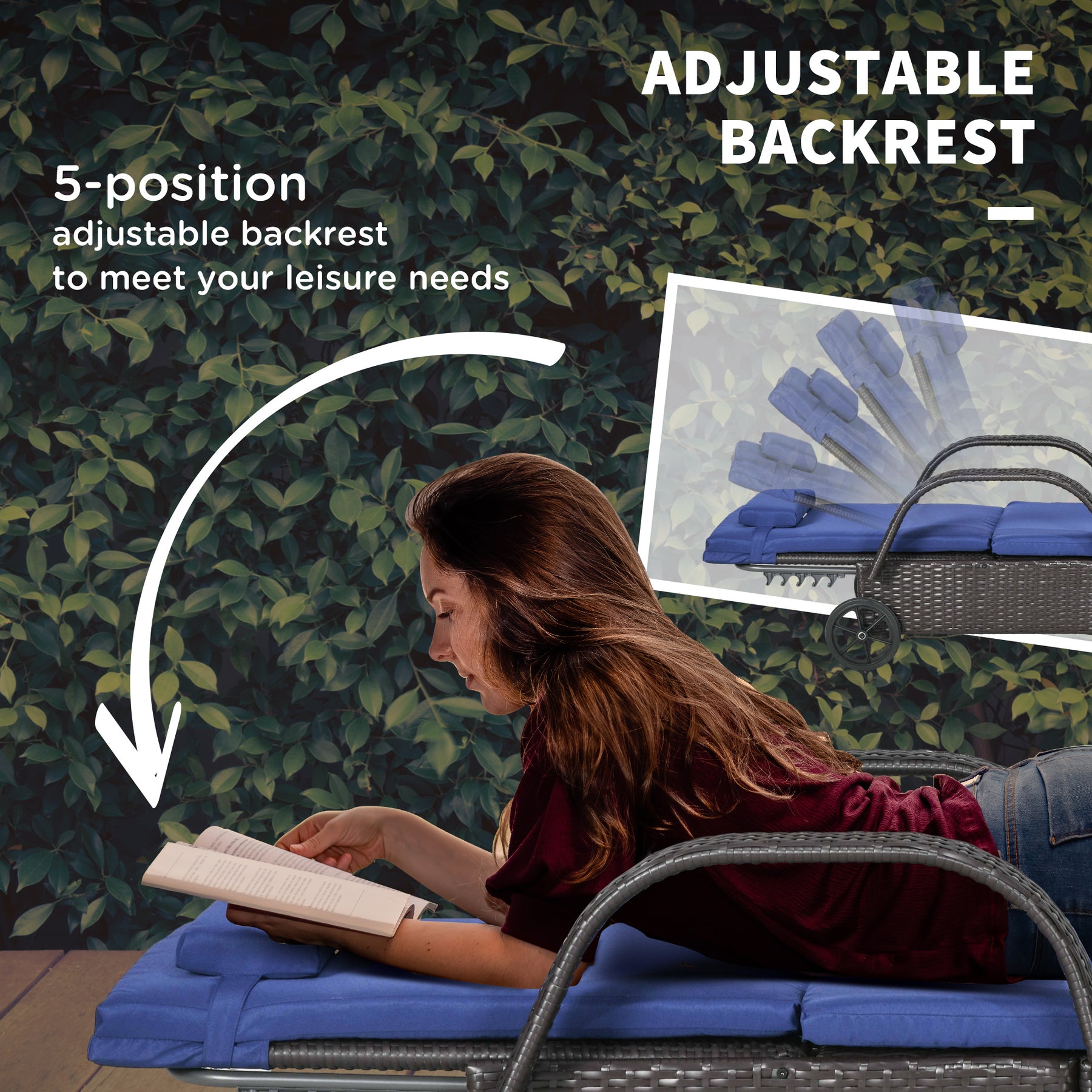 Brighten your backyard with Outsunny's wicker pool lounger. This sun lounger is woven from weather-resistant PE wicker and features a solid powder-coated steel frame for enhanced load-bearing capacity. The 5-level adjustable backrest allows you to choose the most suitable angle. The patio lounge chair also includes a comfortable foam cushion with a UV-protected cover to prevent sun damage. With this lounge chaise, you can enjoy the outdoors and sunbathe in your leisure time!