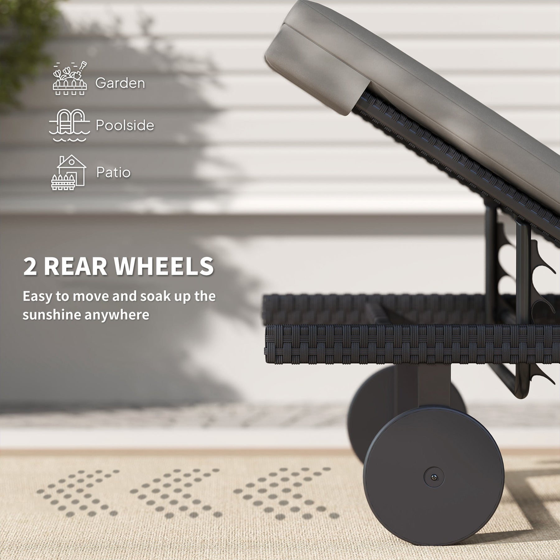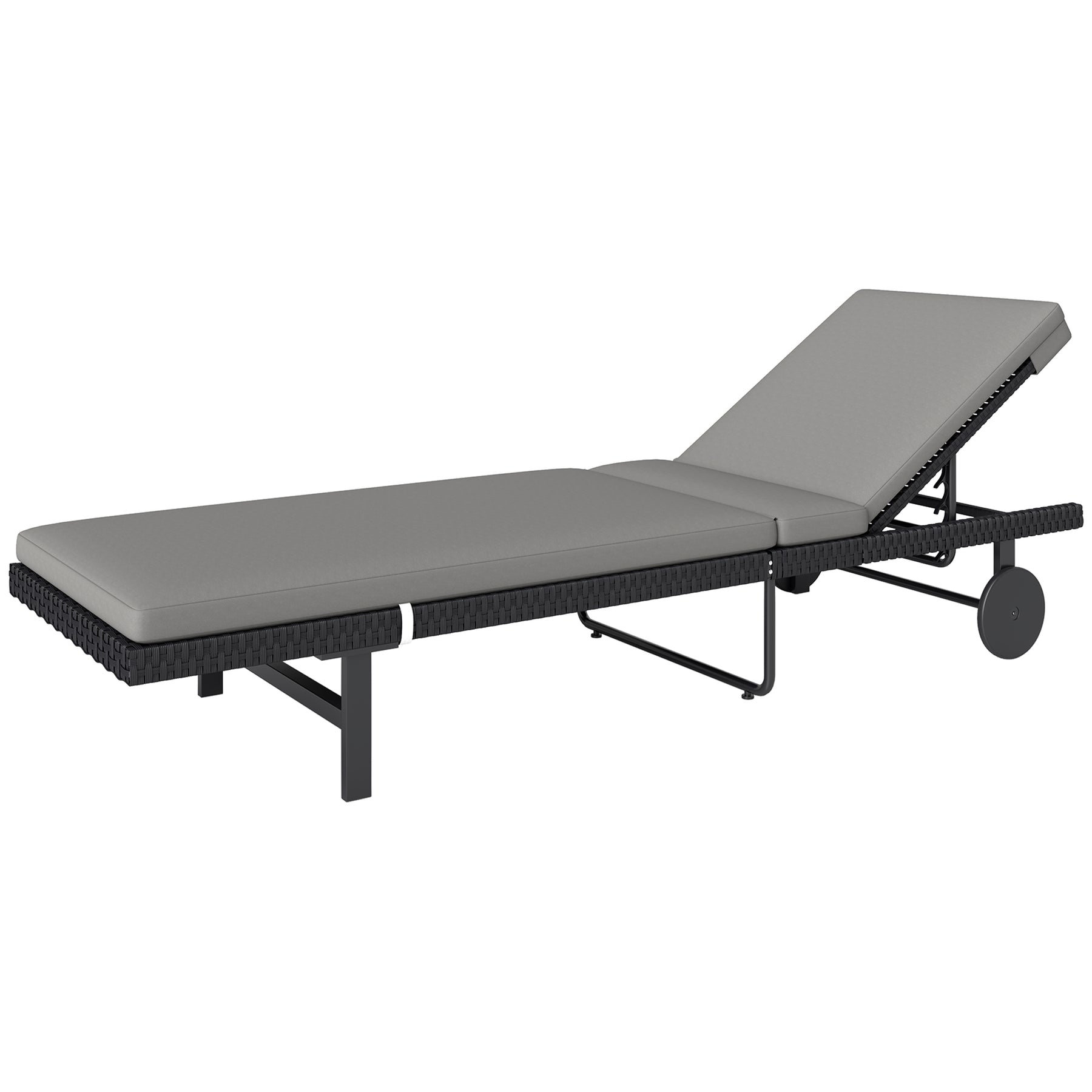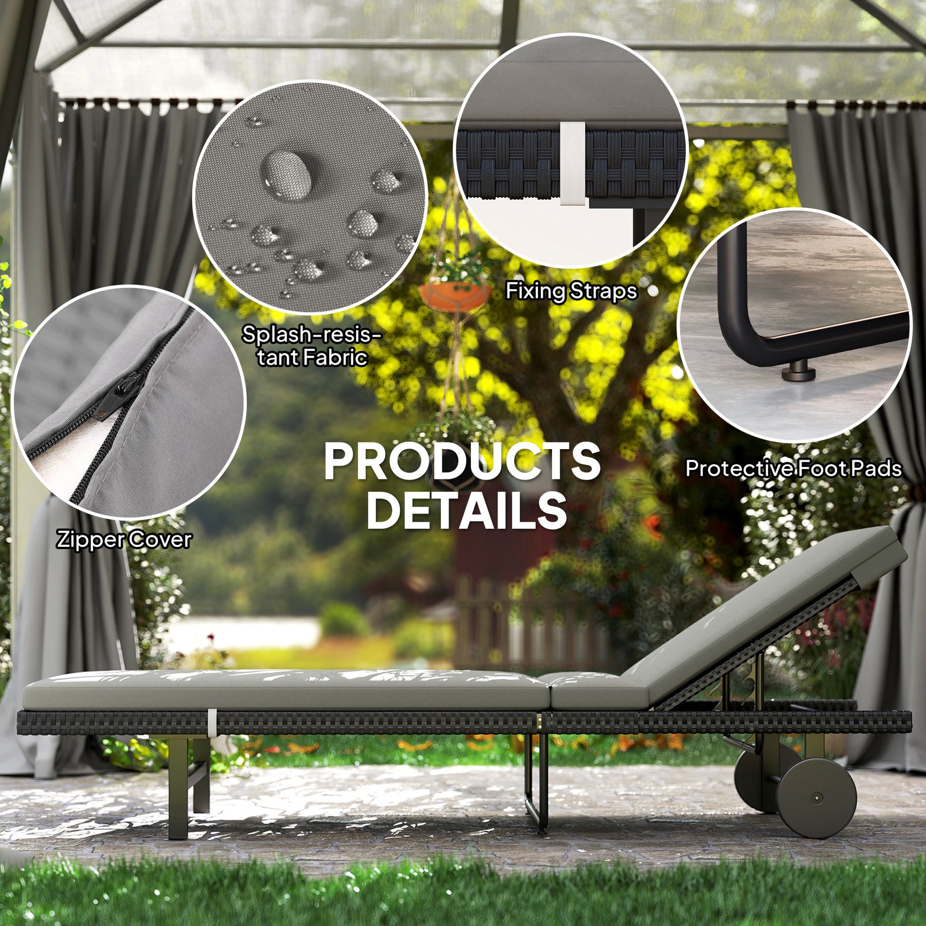 Soak up the sun with the Outsunny pool lounge chair! Find your angle with a five-position adjustable backrest and roll easily to your favorite spot with built-in wheels. This splash-resistant, UV-protected outdoor chaise lounge features a comfy integrated cushion with removable covers, great for any patio lounger or beach lounge chair enthusiast.