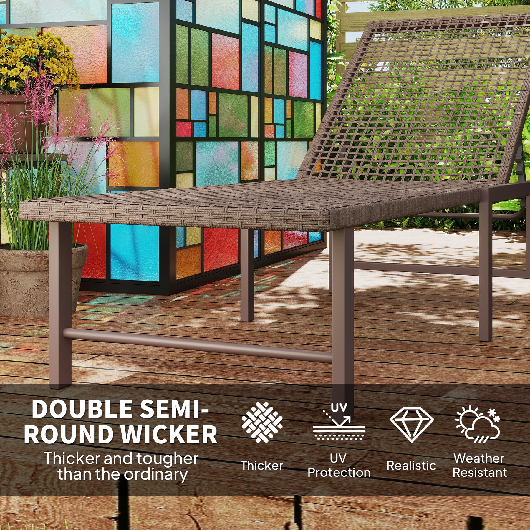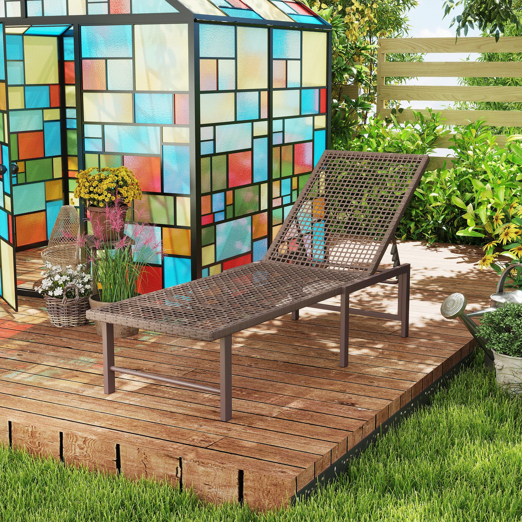 Soak up the sun in style with the Outsunny wicker outdoor lounge chair! Designed for peak relaxation, this pool lounge chair features a five-position adjustable backrest for you to recline at a comfortable level. Hand-woven grid patterns bring a chic look to your outdoor living. Steel frame wrapped in plastic wicker, this beach lounge chair blends weather resistance with a flair of elegance. Bring the tanning lounger from poolside to patio, rearrange, or bring it inside for the season.