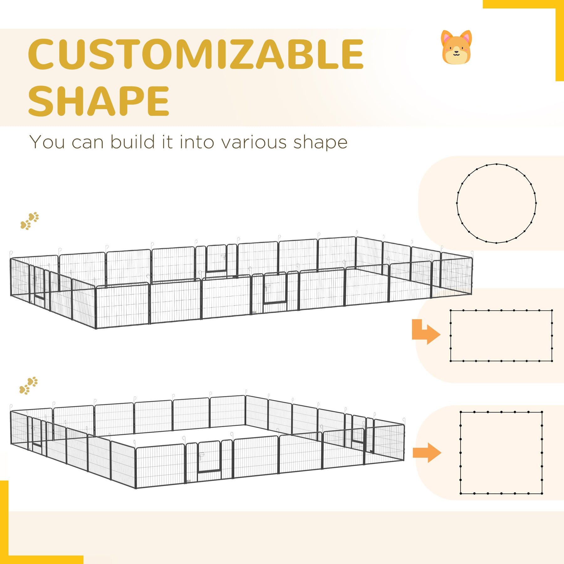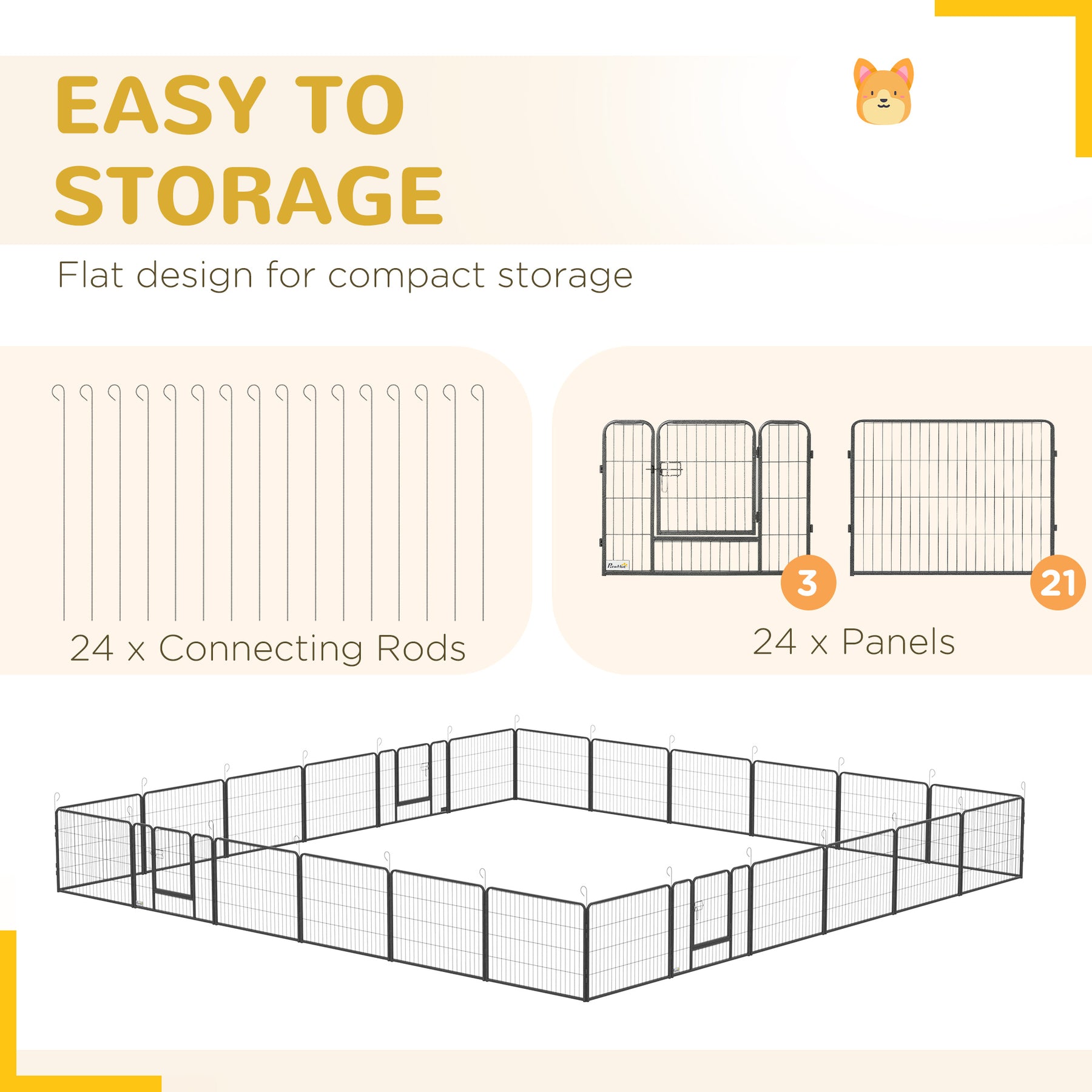 The puppy playpen from PawHut is composed of 24 panels which can be changed at will according to the layout of the home. Equipped with 3 doors to facilitate pets in and out, and lock latch is set to protect the safety of pets. The spacious space for pet rest and exercise. It is a convenient and practical pet enclosure that can be applied to both indoor and outdoor activities. You can use it to restrict your pet's activity area or to separate different pets. A good choice for your pets!