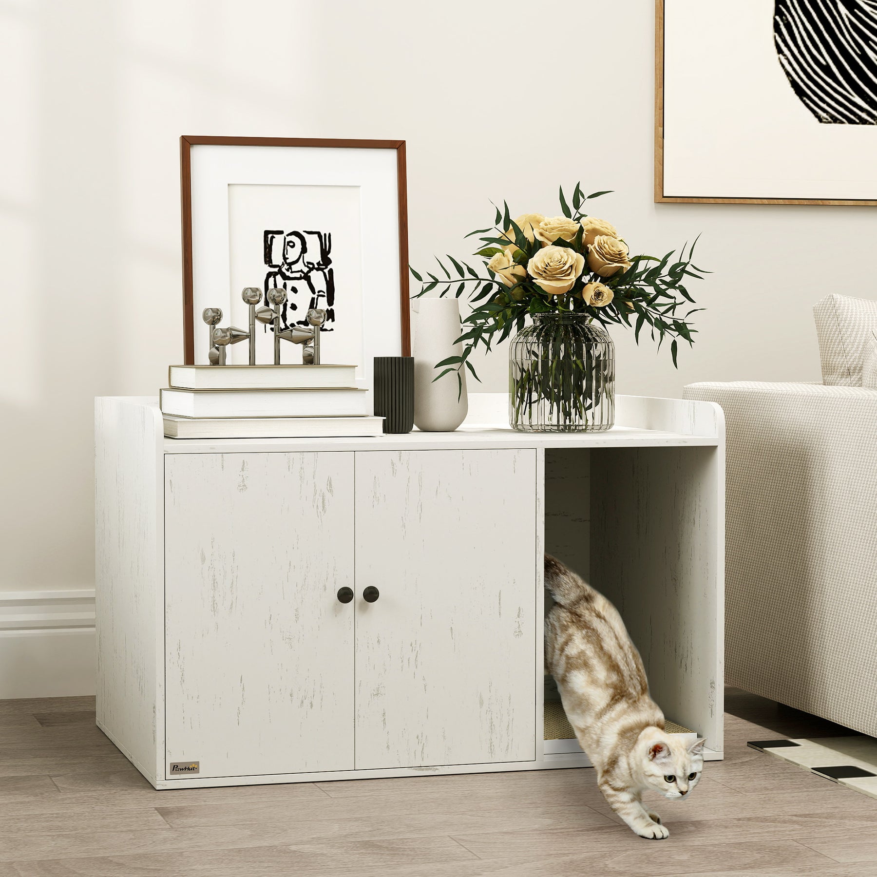 - • Multifunctional design serves as a litter box, cat house, or table