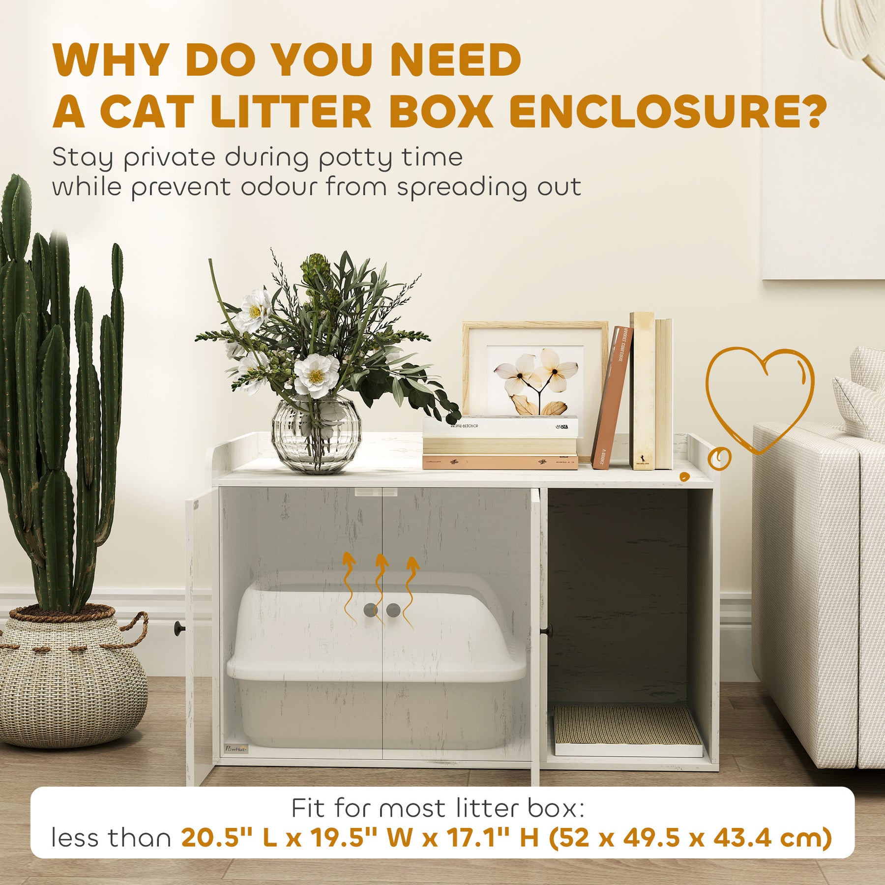 - • Fits most litter boxes under 20.5" L x 19.5" W x 17.1" H (52 x 49.5 x 43.4 cm)