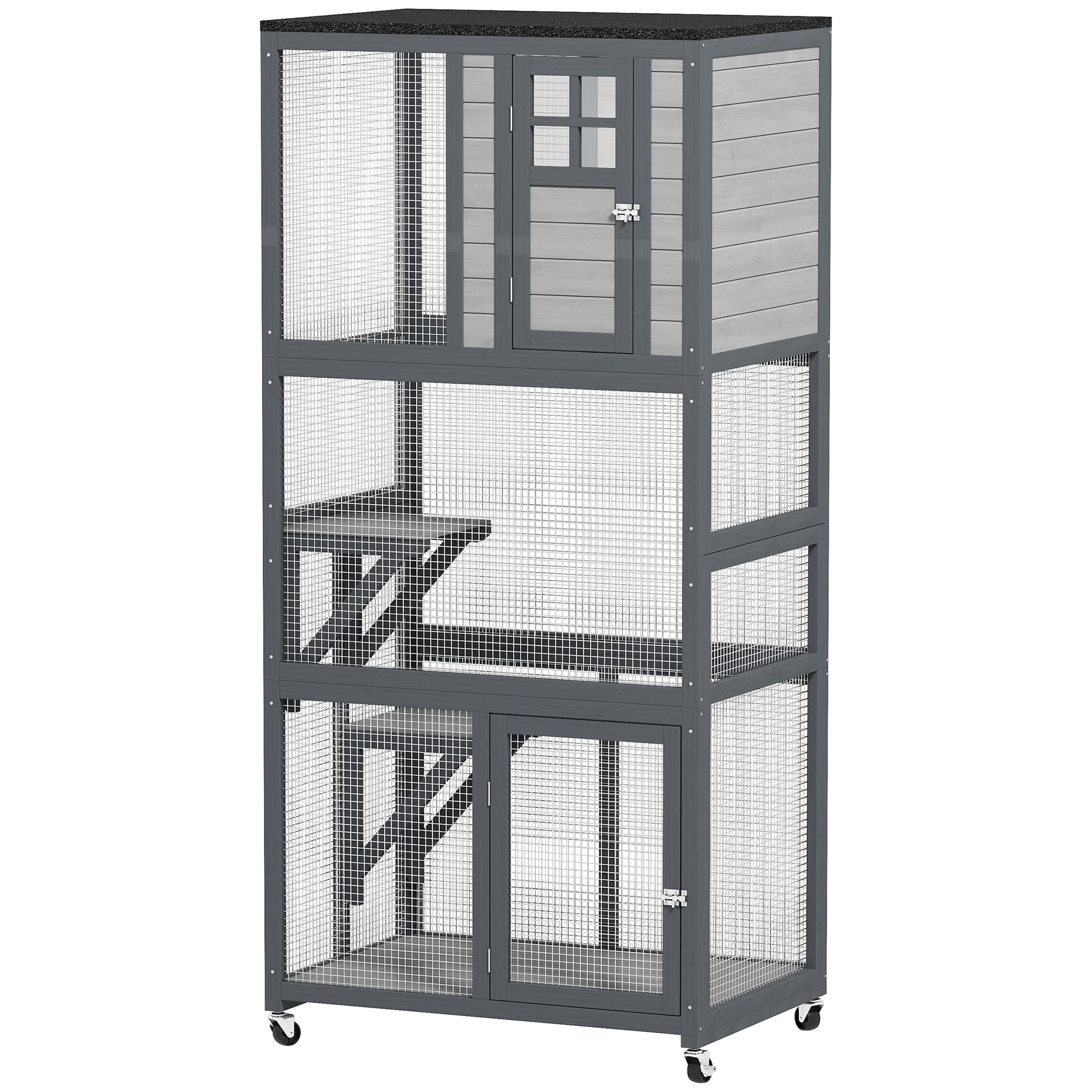 Let your cat enjoy the sun and scenery with this PawHut outdoor cat enclosure for patio. It also acts as a shelter for your pets. Your cats can climb on two platforms to play or relax. Also, its roof is covered with asphalt, which makes it weather resistant. This cat cage is cozy for cats to rest peacefully and be protected from the weather.