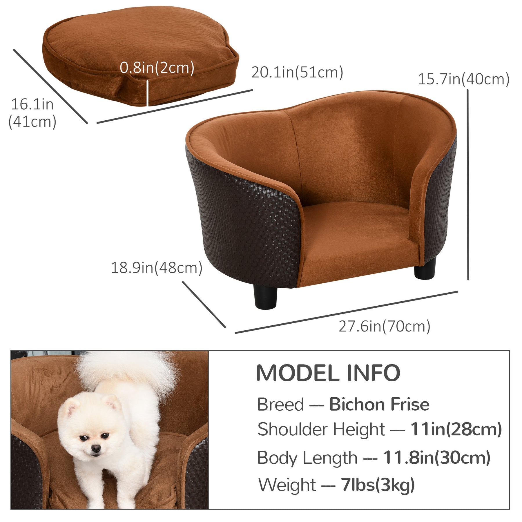 - • Elevated design cat couch fit miniature dogs less than 11.8" (30 cm) in length and under 10 lbs (4.5 kg) in weight