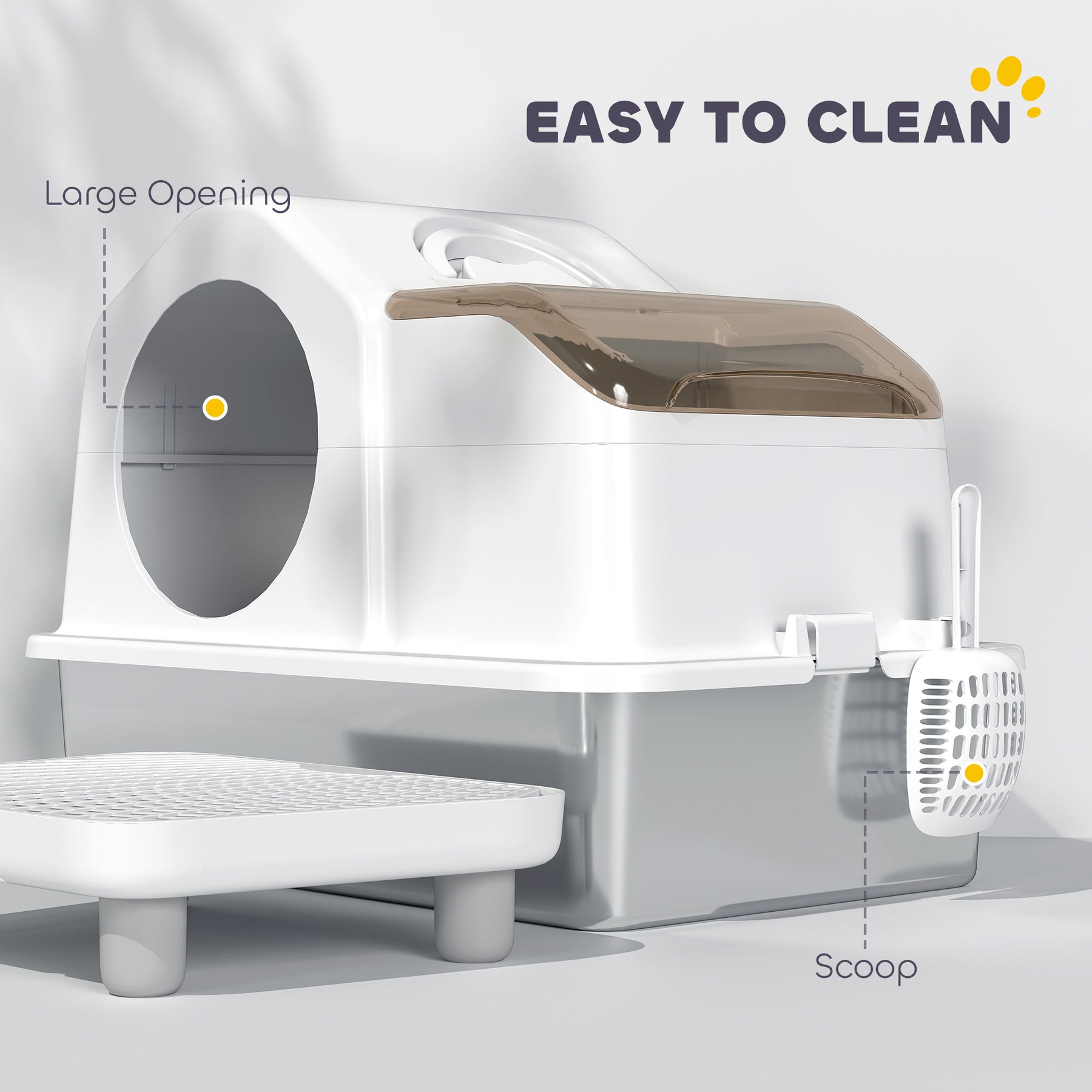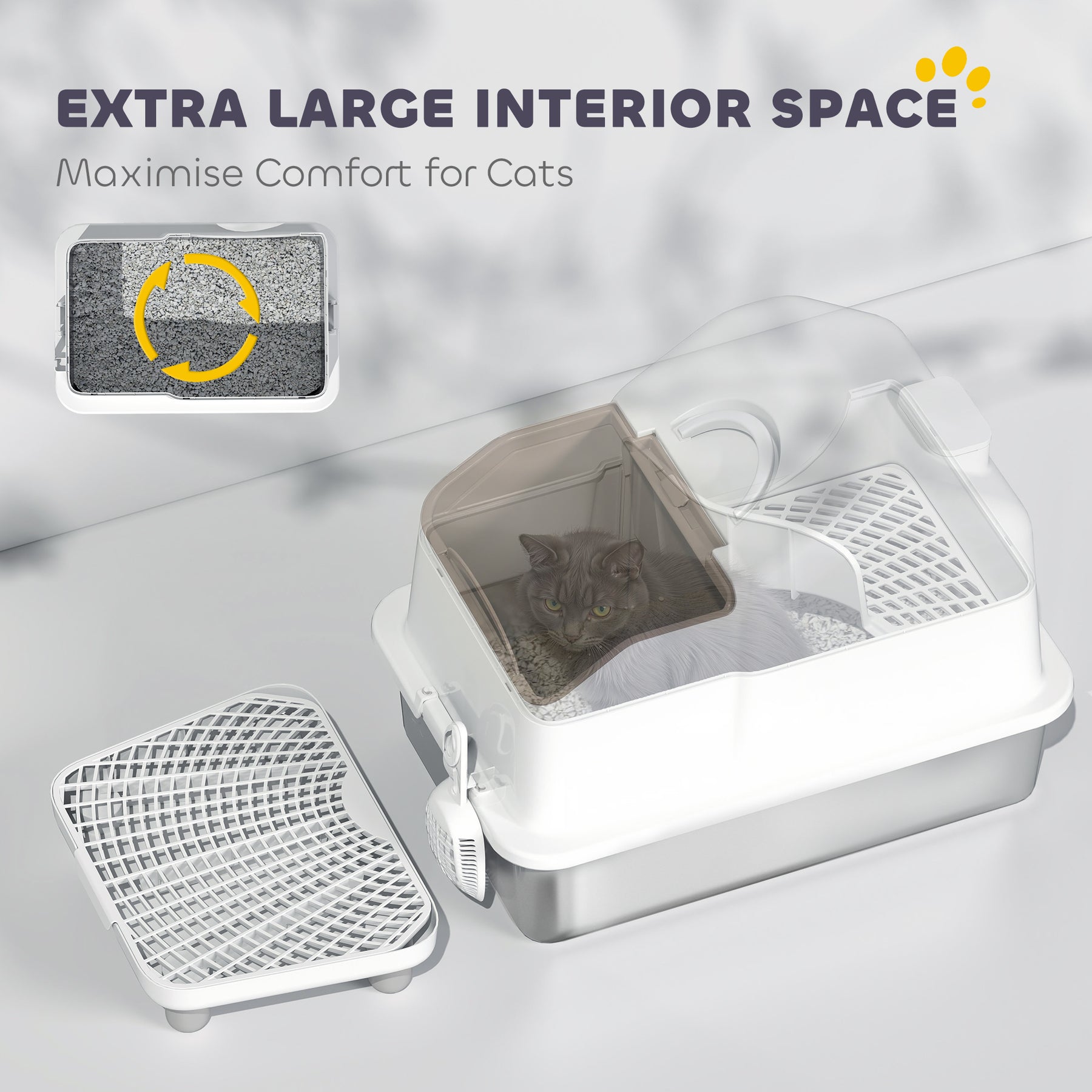 PawHut Stainless Steel Litter Box. Where style meets functionality! Enjoy fresher indoor air with superior odour control, a spacious interior for your cat's comfort, and a hassle-free cleaning experience. The dual sand track also helps keep floors tidy by catching stray litter.