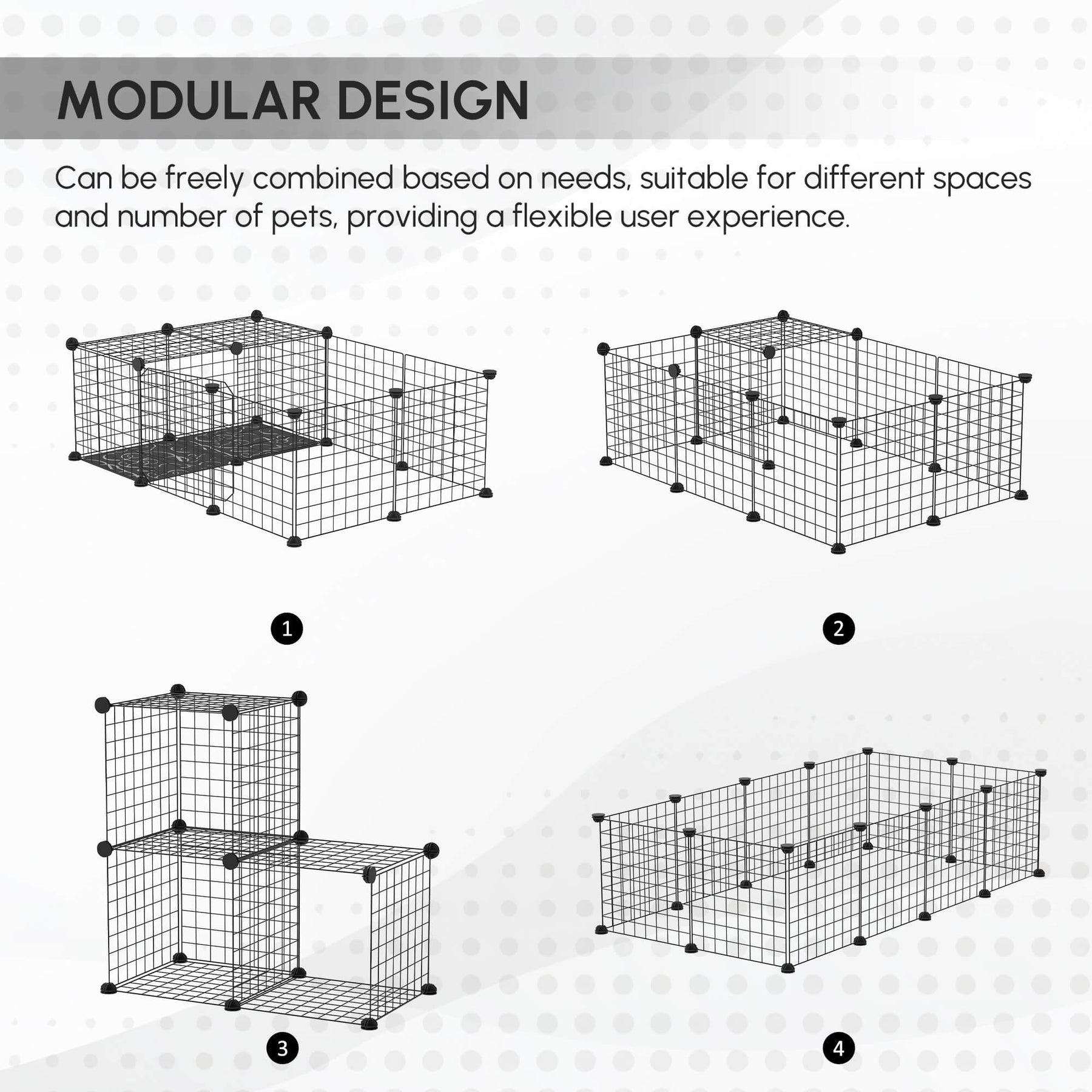 The PawHut bunny cage is designed to provide a tailor-made space for your pets. Thanks to the connectors, you can make up the panels any way you like and create a custom-made area for your little friends. The structure has a door to let animals in and out of the cage easily and is perfect for chinchilla, guinea pigs, bunnies and other small animals.