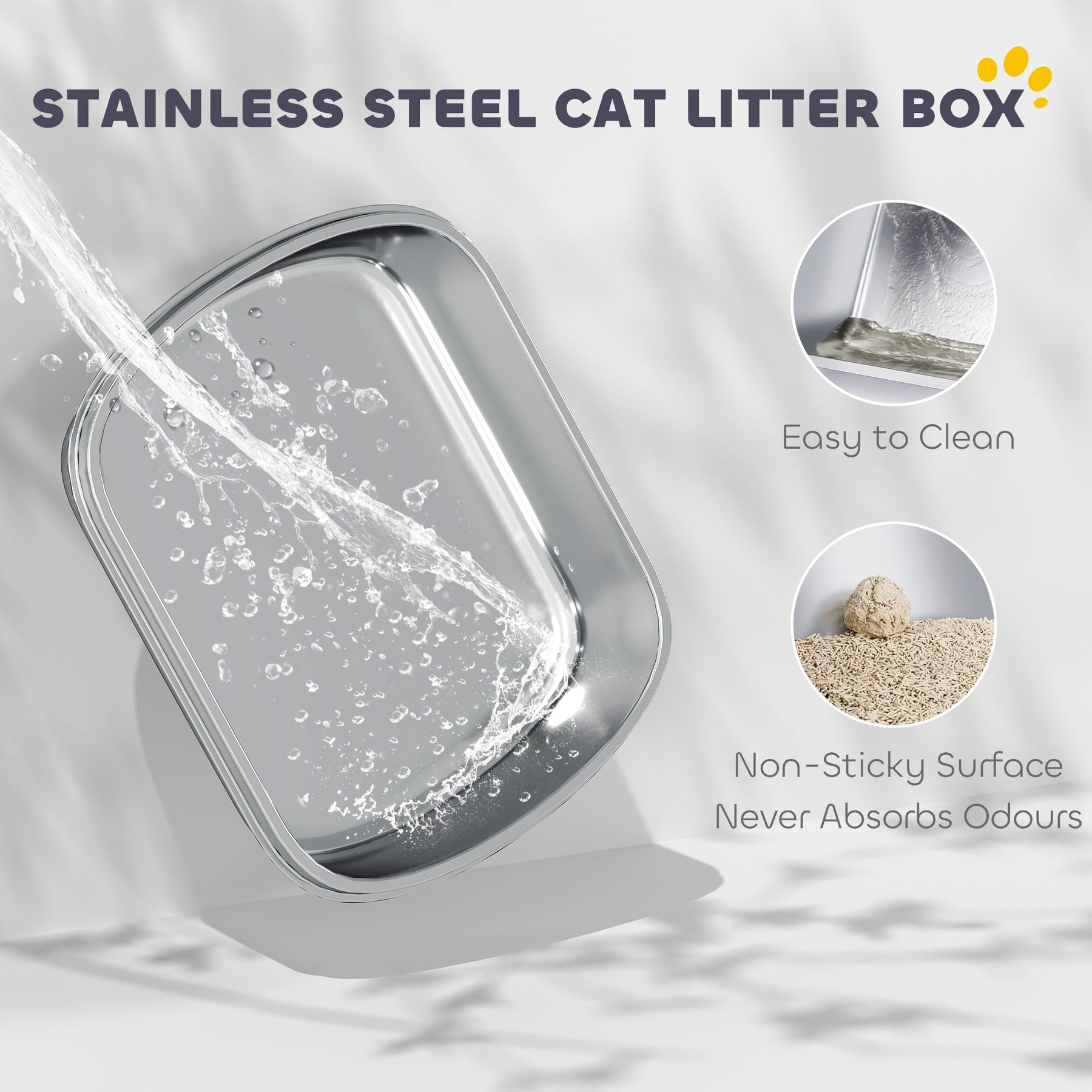 Tired of lingering odors and litter scattered across your floors? The daily chore of scraping a stained plastic box can be frustrating. The PawHut stainless steel litter box offers a fresh start. The non-stick surface of this kitty litter box makes scooping a breeze, while the double anti-tracking design keeps your home tidy. Enjoy a cleaner space and more purr-fect moments together.