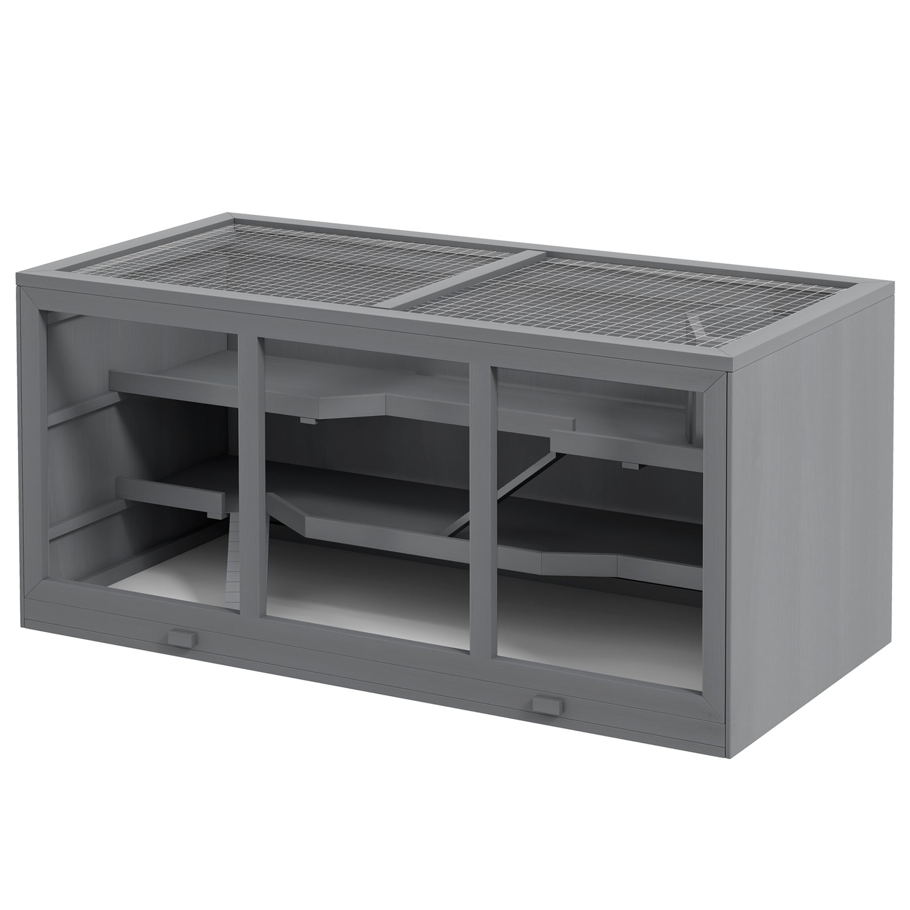 Here we have the PawHut Hamsters House for your little friend. With a large space, great living home and exercise area combined, this house is suitable for hamsters and other small animals. Robust wire net and sustainable wood structure in superior strength for use. You can place it anywhere and your little hamsters will have an instant home. It will provide a safe, dry and warm hiding place for your pets!