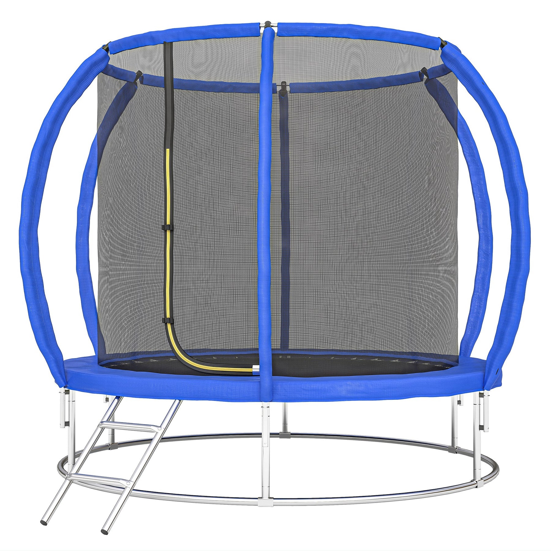 Leap into fun with the Soozier 8ft trampoline! Designed with safety in mind, it features innovative curved poles, an enclosure net, and safe padding— all ASTM standard qualified. Its robust circular base and steel legs ensure unparalleled stability for endless outdoor excitement. Plus, high-tension springs promise sky-high jumps! Enjoy easy access with the included L-shaped entrance and ladder.