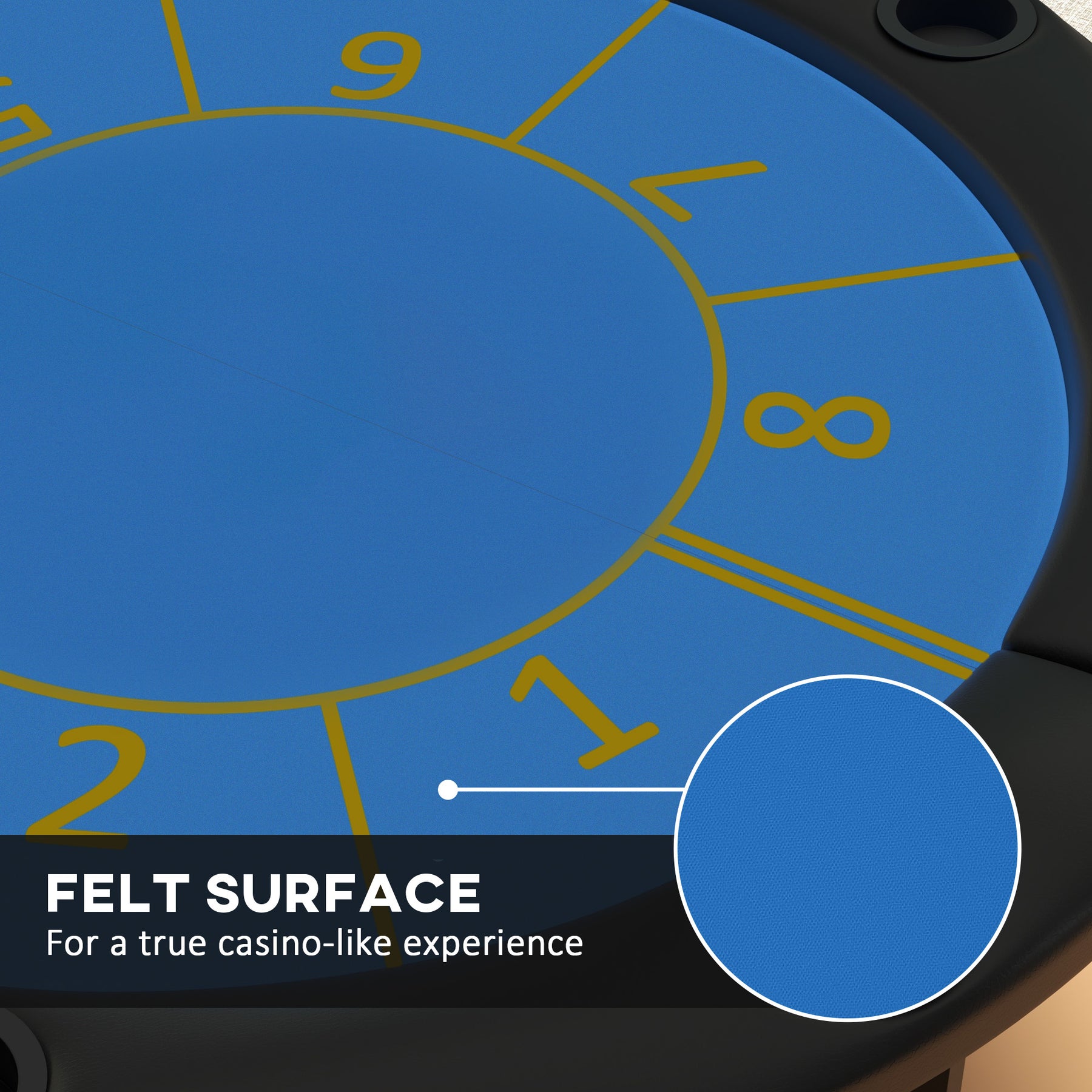 Challenge friends to exciting poker tournaments with a Soozier professional poker table. Its quality feel will have you and your buddies playing long into the night. With a round design for eight players, everyone can comfortably take part in the action. Cup holders and padded armrests make our poker table set promote long-lasting gaming. This foldable felt game table compacts down and stores for travel. Recreate the Vegas experience at home, or anywhere you go when Soozier is your partner.
