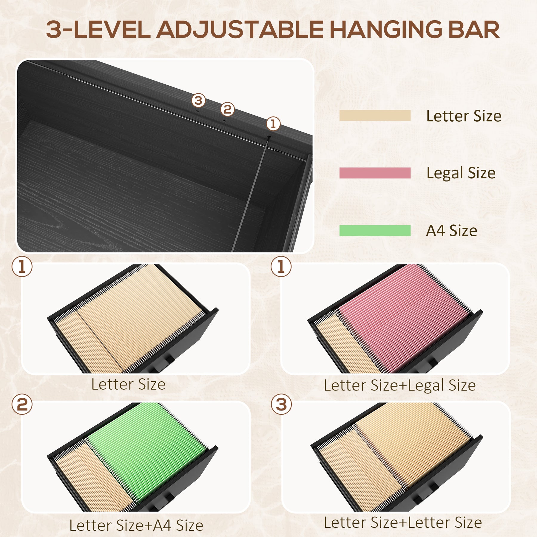 - • Adjustable hanging bar to hold letter, A4 and legal sized files