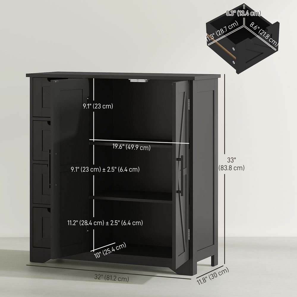 HOMCOM Bathroom Floor Cabinet, Farmhouse Bathroom Storage Cabinet with Adjustable Shelf, Black