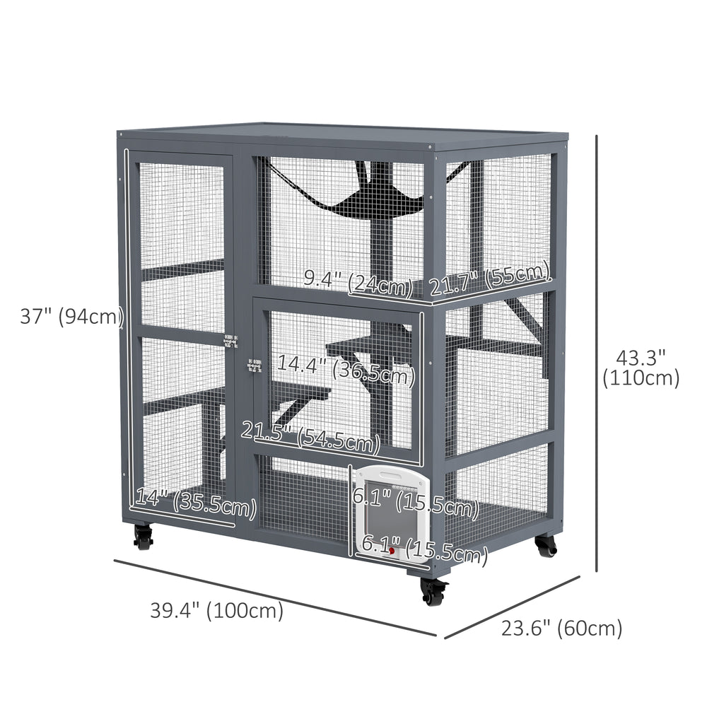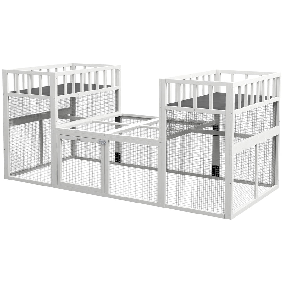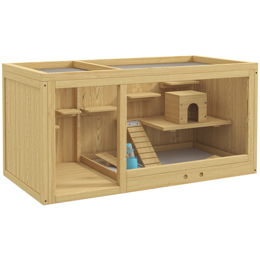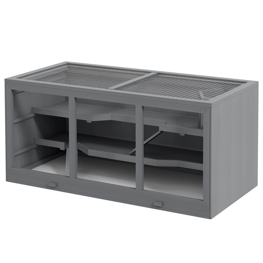 PawHut Wooden Hamster Cage Rat Cage with Slide, Tray, Grey