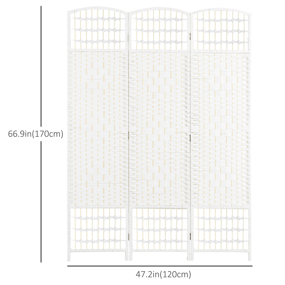 HOMCOM 3 Panel Folding Room Divider, Portable Privacy Screen, Wave Fiber Room Partition for Home Office, White