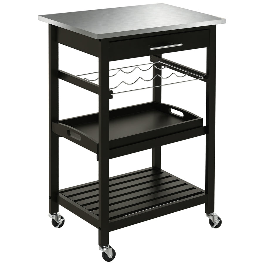 HOMCOM Kitchen Island Rolling Trolley Utility Serving Cart with Drawer Grey