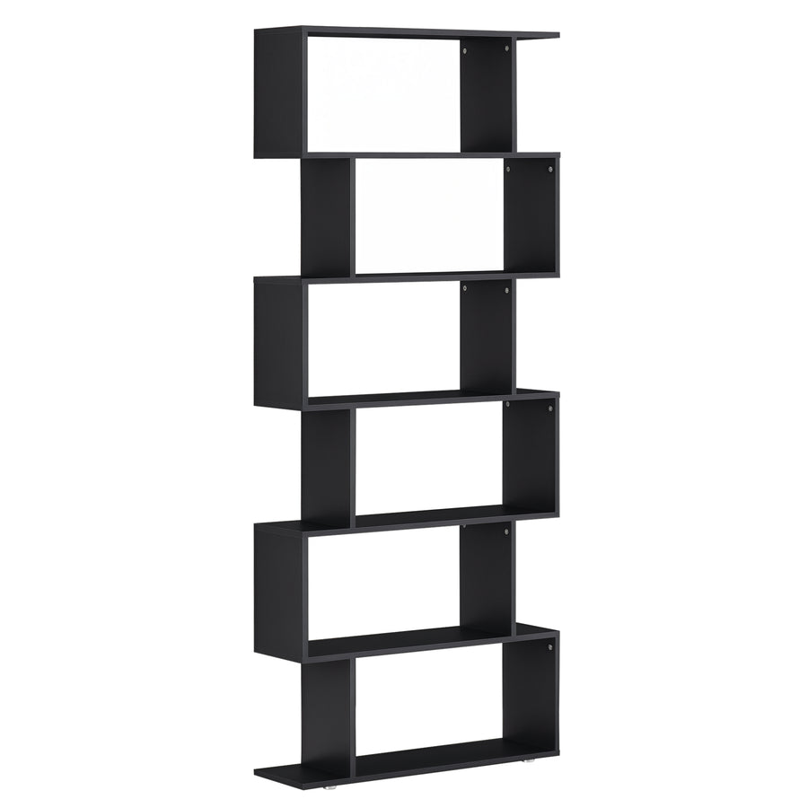 HOMCOM Wooden S Shape Bookcase 6 Shelves Storage Display Home Office Furniture