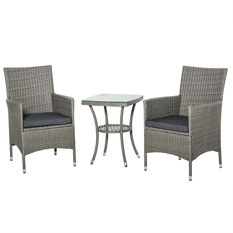 Outsunny 3-Piece Outdoor Folding Rattan Bistro Set, Mixed Brown