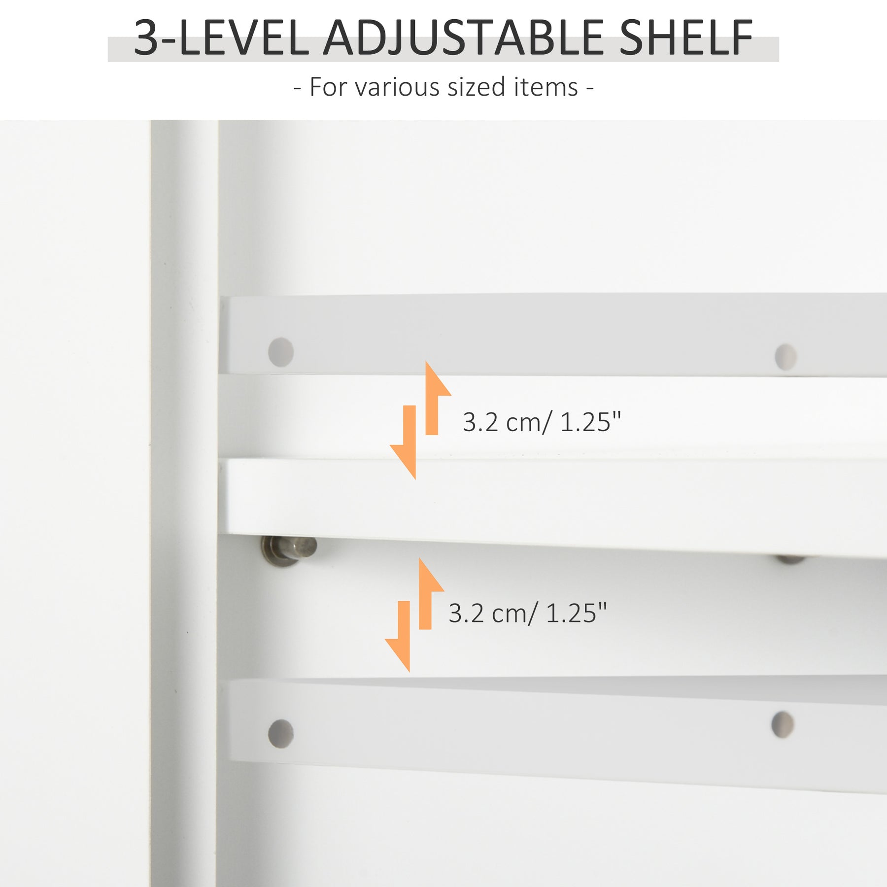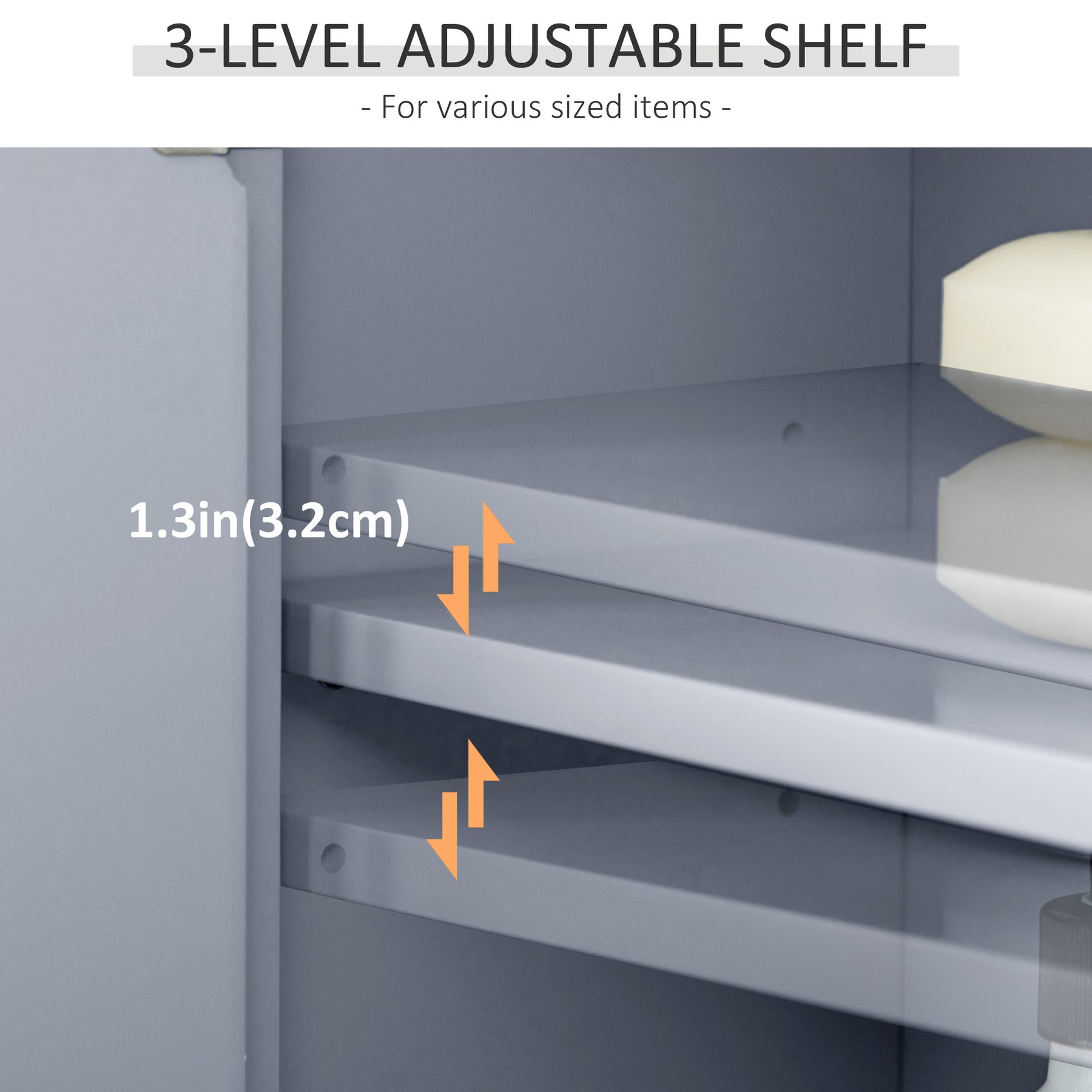 - • Adjustable shelf in the cabinet for various sized items