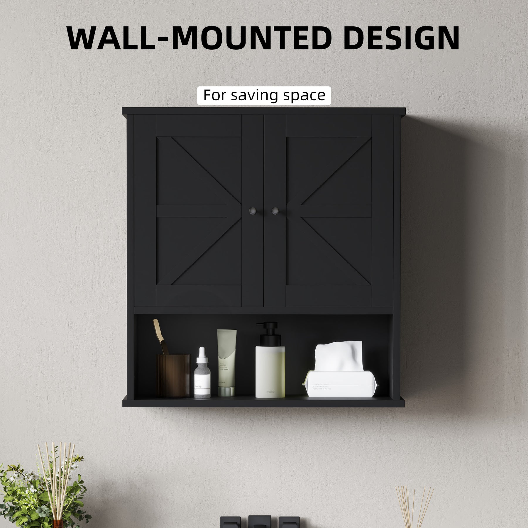 - • Wall-mounted design makes effective use of wall space