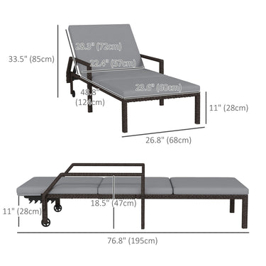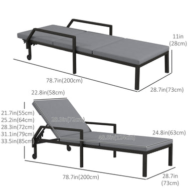 This patio chaise lounge from Outsunny is stylish and can fit with any backyard decor. Constructed with all hand woven PE rattan wicker and a steel frame for durability. A 5-level adjustable backrest can match your body and provide relaxing and sleeping modes. With flexible wheels on both sides, the tanning chair can be easily moved from place to place as you like. Ensuring you will feel relaxed while sunbathing with our wicker pool lounger.