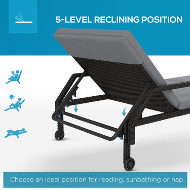 Outsunny Wicker Chaise Lounger with 5-Level Adjustable Backrest, Light Grey