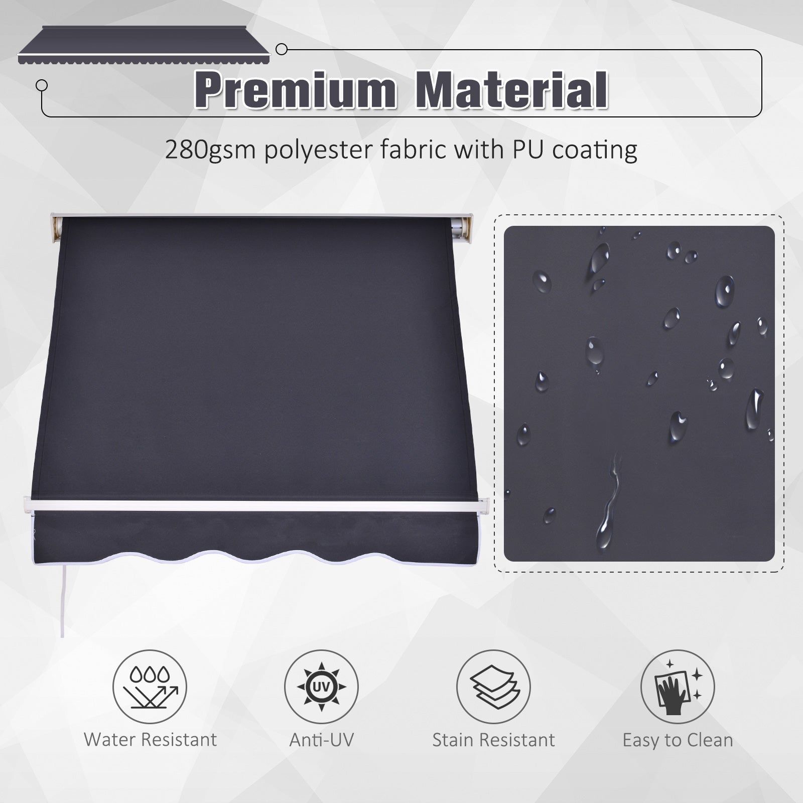 The awning can be projected as little or as much as you require, up to the maximum specified above. The fabric rolls back into the cassette when the blind is not in use, thus ensuring it is protected from the elements. The awning can be set up with a support bar at each end, or, if required, it can be set up with a single central support bar.