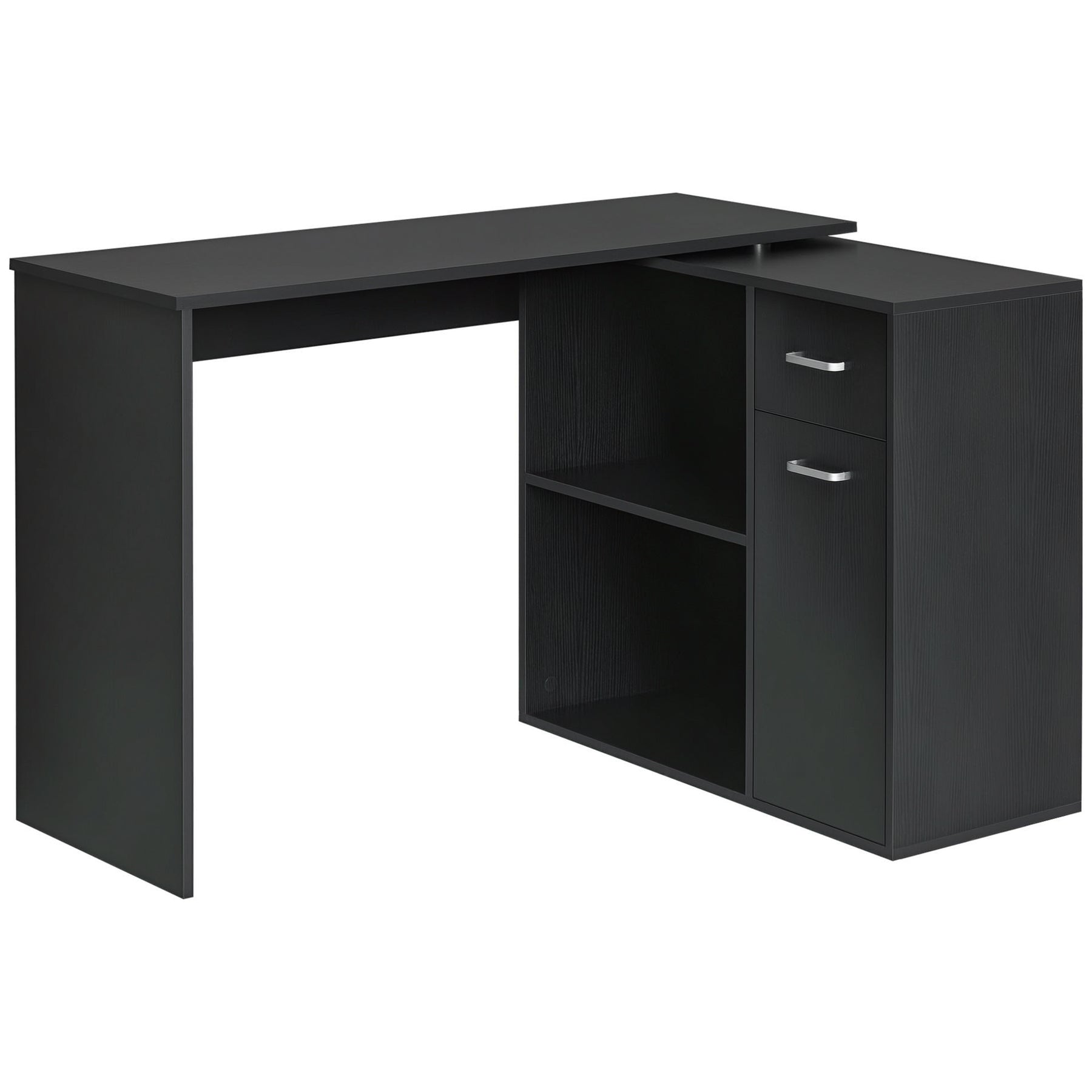 If you are looking for a compact computer table with various options, this HOMCOM Rotating L Shaped Desk is what you need! This corner desk for small space can be adjusted to your needs and contains plenty of storage space. The modern look adds a touch of class to your office or home and is crafted from high grade materials. Create a stylish working station, storage unit, and display case with this unique offering from HOMCOM.