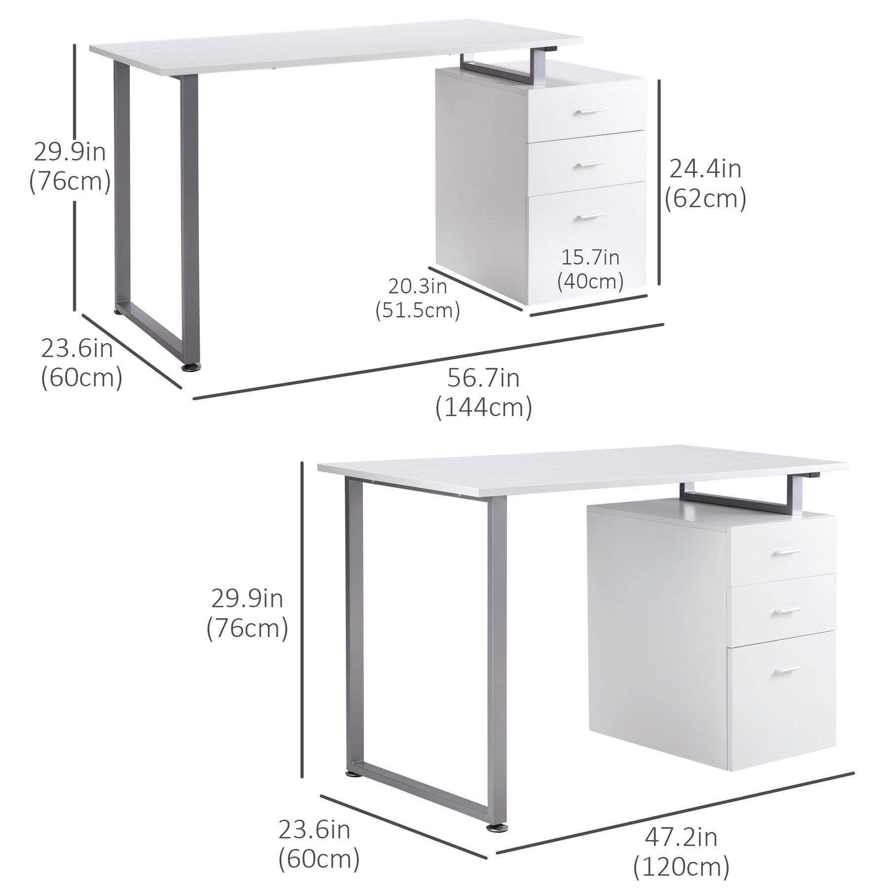 - • Overall Dimension(Cabinet outside the Desk): 56.7" L x 23.6" W x 29.9" H (144 x 60 x 76 cm)