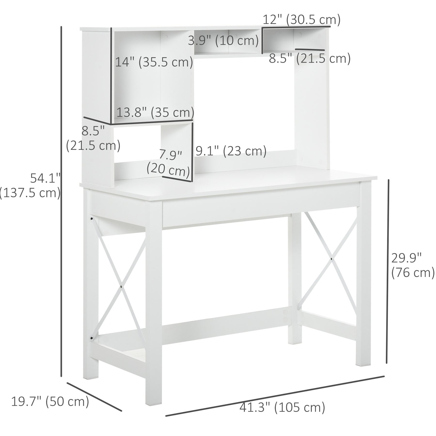 Maximise your space and productivity with this HOMCOM sleek computer desk, complete with a hutch including three shelves and two open compartments for all your essentials. Crafted from particle board and steel, this writing desk promises stability for all your work or study needs. Its chic brown finish and clean lines ensure it fits stylishly into any small room or office.