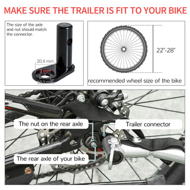 - • Bicycle hitch / connector is included, compatible with 22"-28" diameter bike wheels