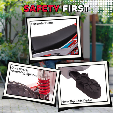 - • Rechargeable 12V battery provides up to 45 minutes of playtime on electric ride on bike