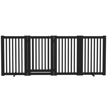 PawHut 4 Panel Free Standing Wooden Pet Gate with Open Door Black