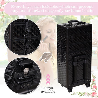 Travel with greater peace of mind with our makeup boxes from HOMCOM. You can keep all of your makeup secure and in the same place for maximum convenience. You'll find this makeup travel case is a perfect travel companion. Designed with locks to ensure that you are the only person with full access to your inventory. Why pile up your cosmetics on bathroom counters and cram them inside drawers? Both you and your makeup will be thankful of the makeup case on wheels when you have an organized storage place.