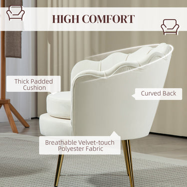 Sink into something comfortable without sacrificing your home space with this club chair from HOMCOM. The elegant lotus-shaped design makes the accent armchair a standout piece in any room. The golden colored metal legs add more luxurious style and stability. The soft cushioned seat with breathable velvet-touch fabric delivers exceptional comfort. Add this elegant living room chair suits to your dining room or bedroom and let it accompany you to spend every leisure moment.