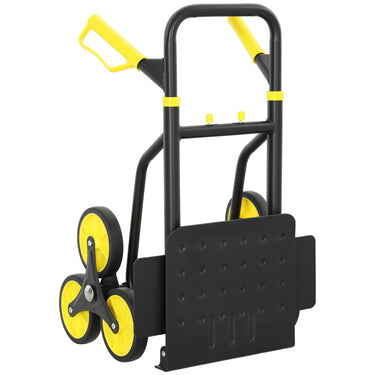 Choose this 6-wheel stair-climbing trolley to get your large appliances upstairs, or simply transport bulky loads across uneven floors. It has a large capacity, aluminum-frame with fixed rope, offers great support and avoid the large load from falling. Simply fold it to store away in your trunk when not in use.