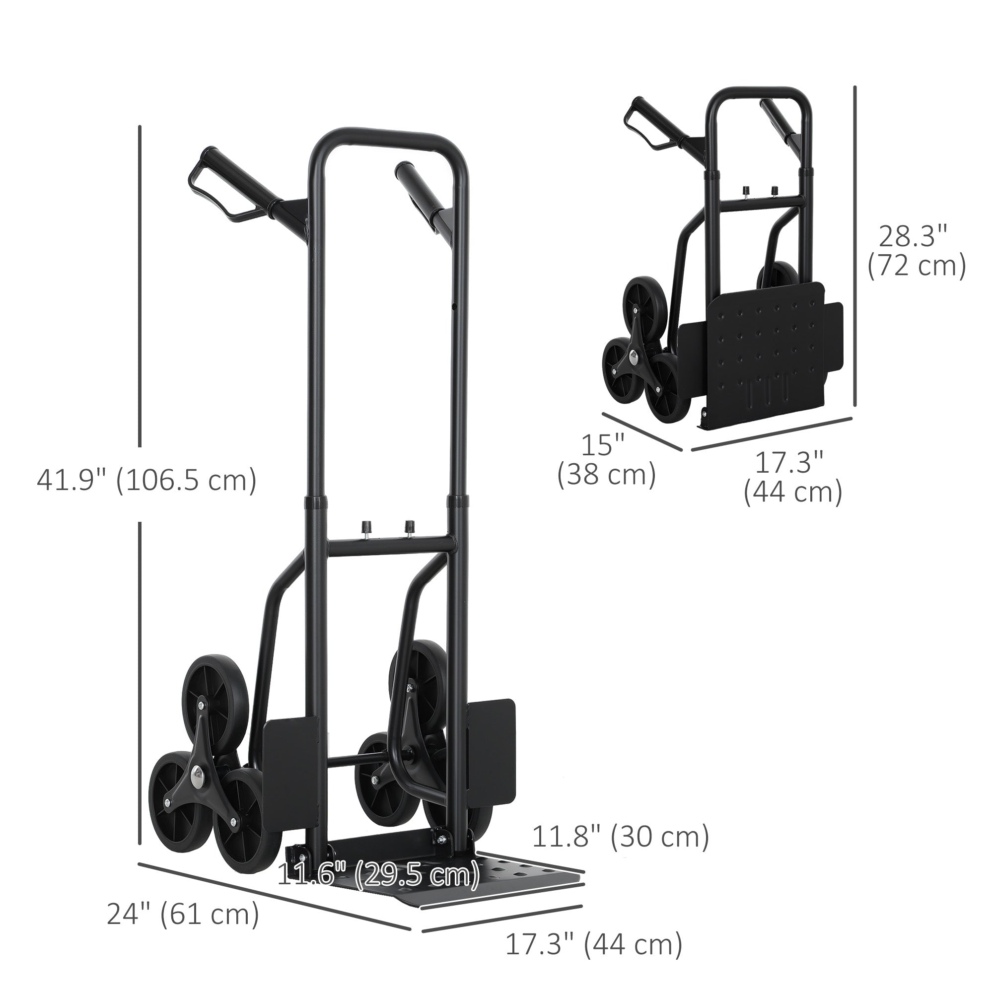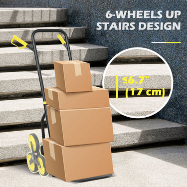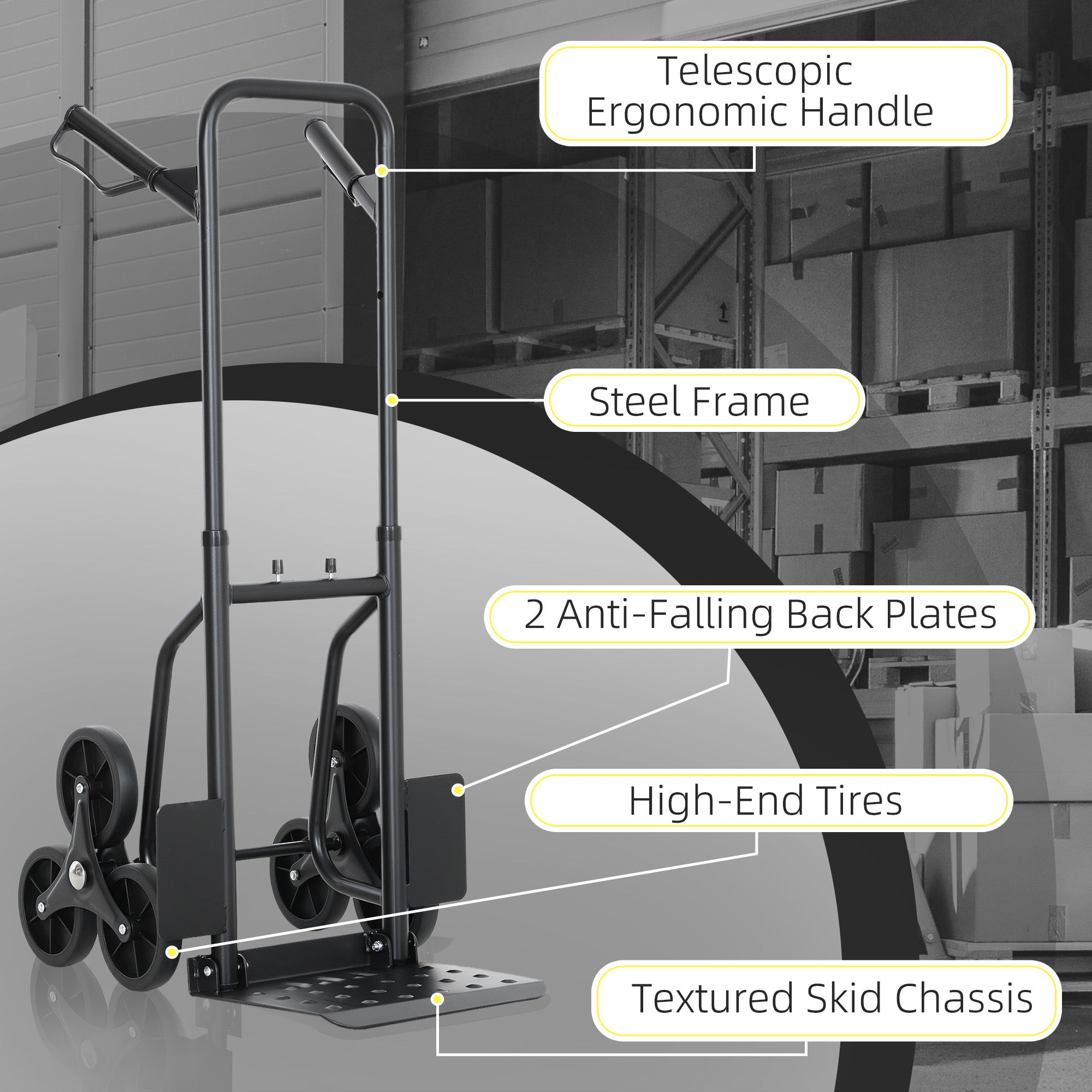DURHAND 6-Wheels Stair Climber Hand Truck, Dolly Heavy Duty Folding Steel Load Cart with Adjustable Telescoping Handle for Moving, Luggage, Travel & Office, 154lbs Capacity