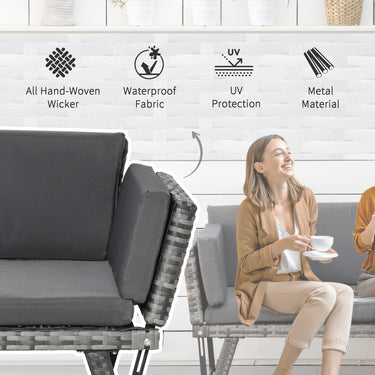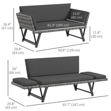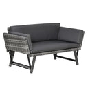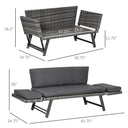 Outsunny Convertible Wicker Loveseat Grey Patio Chaise Lounge