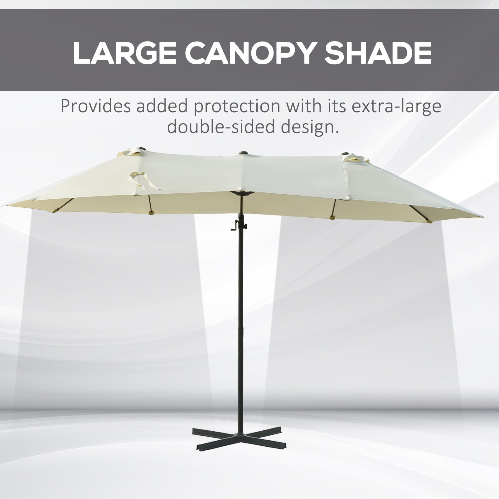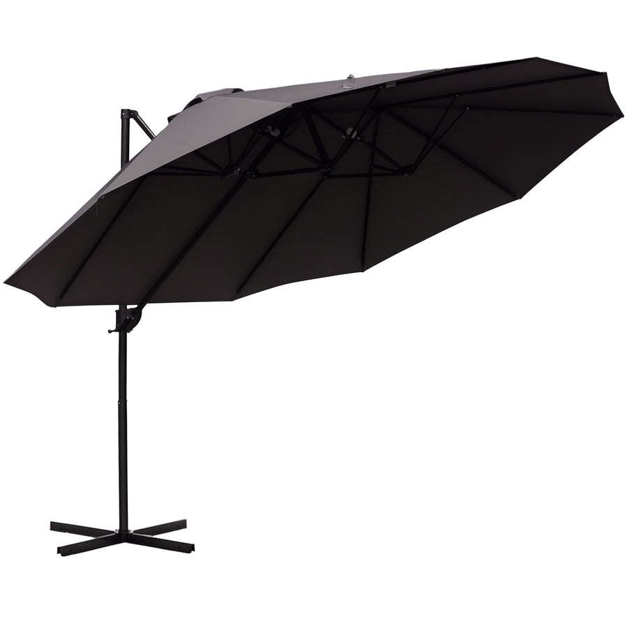The Outsunny double sided outdoor patio umbrella is a perfect choice to add shade during warm weather conditions or anytime you need a little extra shade. The double-sided and anti-UV canopy offers the maximum sunshade and blocks harmful UV rays. Constructed with the rust-free steel pole and 12 heavy-duty steel ribs, this umbrella is superior in strength and durability. The manual crank handle allows you to easily open and close the umbrella at your convenience. Don’t let sun exposure ruin your afternoon. Life is meant to be enjoyed outdoors. Get out and get Outsunny!