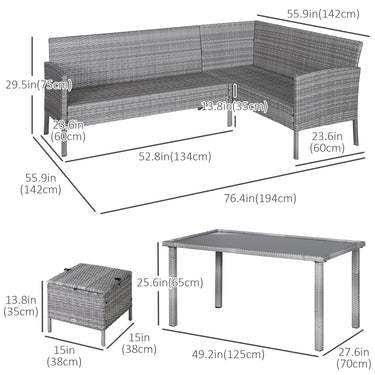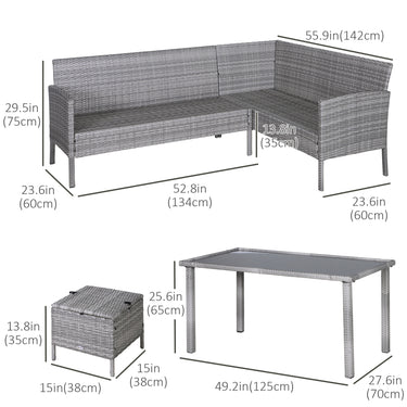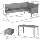 For a stylish and comfortable outdoor dining table set, look to this 5-piece rattan set from Outsunny. Featuring two 2-seat lounger sofas, 2 footstools, and a long table to meet your needs. Built from PE rattan with a steel frame for support, the thick padded cushions offer comfort. Finished with a tempered glass board topper on the long table, this patio table set is easy to clean and maintain. You can invite friends over when the sun comes out to shine.