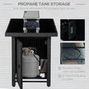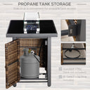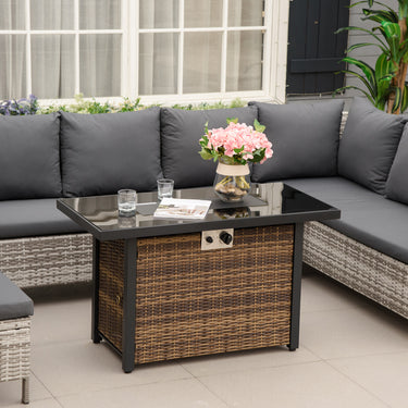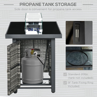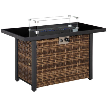 Outsunny Propane Fire Pit Table 43in Outdoor Fire Table, 50,000 BTU Pulse-Ignition Wicker Firepit Furniture with Glass Wind Guard, Blue Glass Rock, CSA Certification, Black
