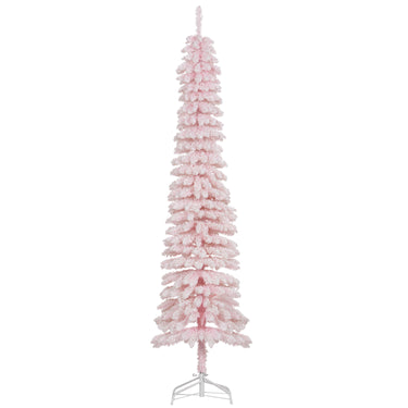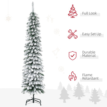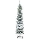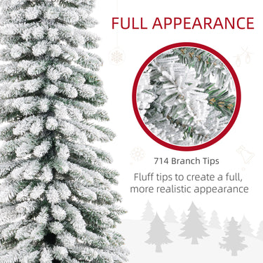 HOMCOM 6 Ft Snow-Flocked Artificial Christmas Tree, Slim Pencil Xmas Tree with Realistic Branches, Metal Base, Green
