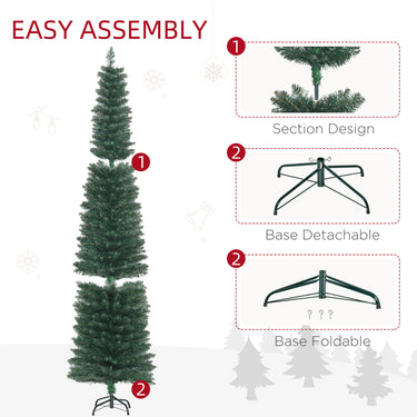 Bring nature home without the mess with this skinny Christmas tree from HOMCOM! Our beautiful holiday tree provides a great alternative to conventional trees with easy set up and little mess or maintenance required. Designed in a perfect tree shape, this slim Christmas tree consists of full-bodied and realistic plastic tips. It's certain to be a striking centerpiece for your family's holiday decor this year and in years to come.