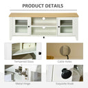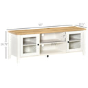 Take advantage of the HOMCOM TV cabinet to make your home fashionable! This entertainment unit is stylish and all-matching, with clean lines and an elegant appearance. This contemporary media cabinet will meet your various needs with a large tabletop, two open shelves, and two side cabinets with three-position adjustable shelves. Furthermore, the quality MDF board and tempered glass will ensure long-term use. It's the great gathering point and anchor for your living room!