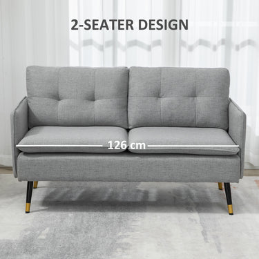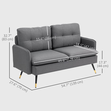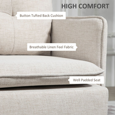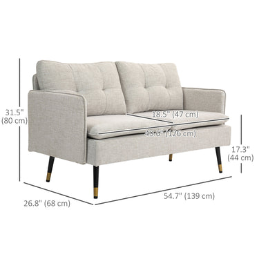 Sink into something comfortable without sacrificing your precious home space with this loveseat sofa from HOMCOM. The loveseat sofa design is excellent for compact spaces and spacious enough to relax with family and friends. Its breathable linen-touch fabric and thick seat and back cushions offer exceptional seating comfort. Its tufted button design and linen feel surface evoke elegant charm. Enjoy a comfortable living room couch without giving up a lot of space.