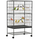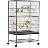 PawHut 52'' Large Rolling Steel Bird Cage Bird House with Rolling Stand, Storage Shelf, Wood Perch, Food Container, Dark Grey
