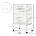 Keep your pet stimulated, safe, and happy with an indoor bird cage starter kit with a rolling stand from PawHut. Our cage provides plenty of living space and room for activity. This large parrot cage with wheels includes 4 perches and 4 food containers for your birds to enjoy. You'll be able to easily access your bird's food, water, and the inside area with multiple doors. The front slide-out tray on the bottom is designed to catch bird seed and slides out to make clean-up a breeze.