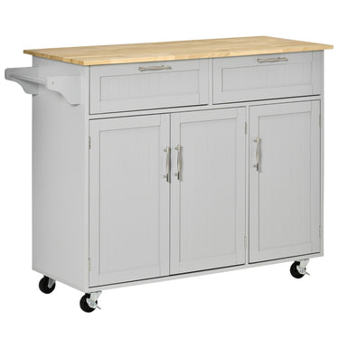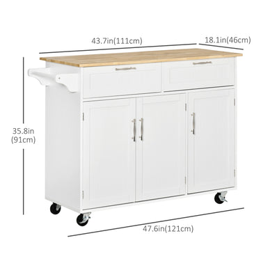 Do you want to make the most of your kitchen space? This kitchen island has a simple modern design that can be incorporated into a variety of decorating styles. It has two easy-glide drawers, three concealed cabinets, and a towel bar. This kitchen island cart has a compact design and plenty of storage space; it will provide you with an excellent user experience. With our HOMCOM rolling kitchen island cart, you can instantly upgrade your kitchen.
