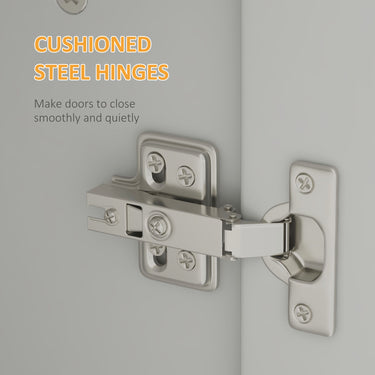 - • Equipped with soft-close hinges, making doors to close smoothly and quietly