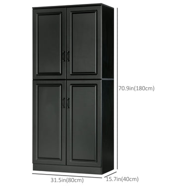 HOMCOM 71" Freestanding Kitchen Pantry Cabinet, Storage Cabinet with 4 Hinged Doors and Adjustable Shelves, White